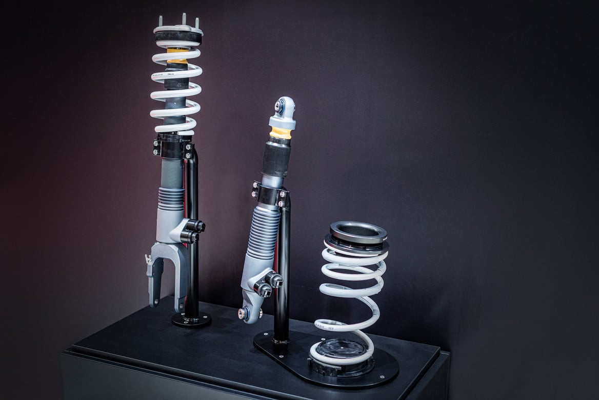 Zestaw kompletnego zawieszenia sportowego, z regulacją wysokości do -45mm. W skład zestawu wchodzą nowe amortyzatory oraz sprężyny.