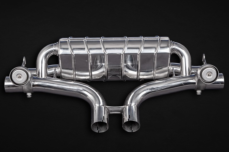 Sportowy układ wydechowy składający się z tłumika tylnego z klapami, sekcji środkowej Cat-Back oraz nowych końcówek wydechu. Sterowanie głośnością odbywa się za pomocą fabrycznej elektroniki we wnętrzu auta lub pilota Capristo.