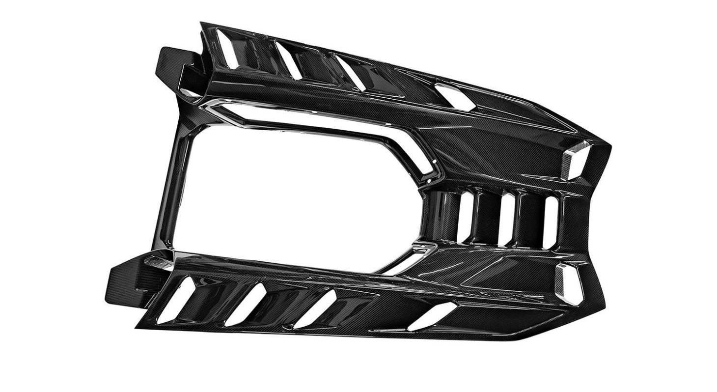 Carbon – elementy wykonane z włókna węglowego są pokryte bezbarwnym lakierem i gotowe do montażu, po wcześniejszym przypasowaniu do auta.