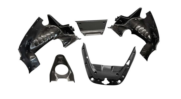 Zestaw osłon komory silnika, wykonanych z najwyższej jakości włókna węglowego (carbonu).